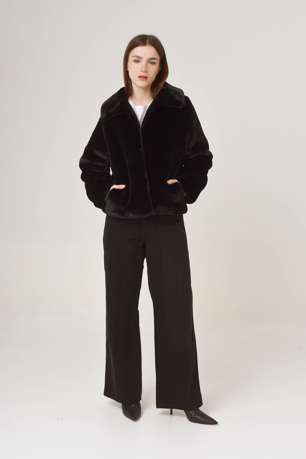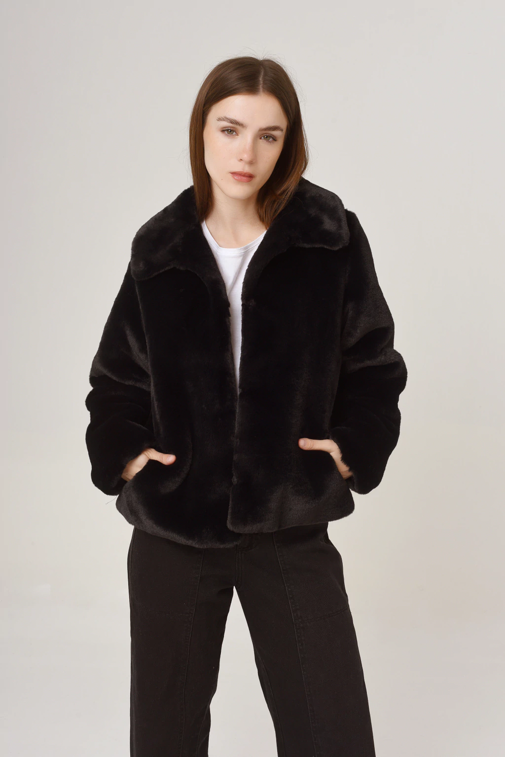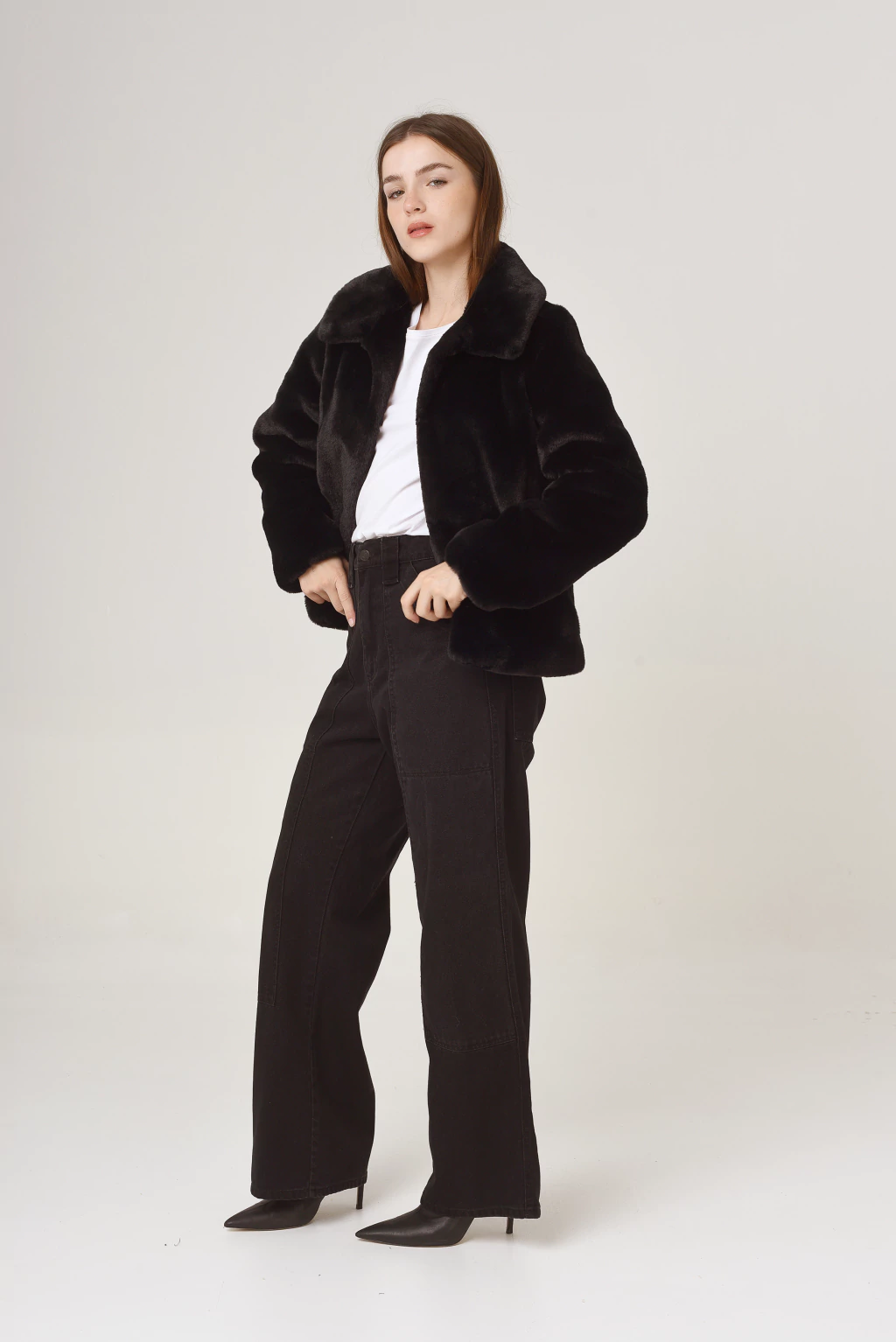 Saco Beaver: elegancia y confort en piel sintética Este saco corto está confeccionado en piel sintética de alta calidad, combinado con una forrería de satén que brinda suavidad y comodidad excepcionales. Cuenta con prácticos ganchos peleteros para un cierre seguro y sofisticado.