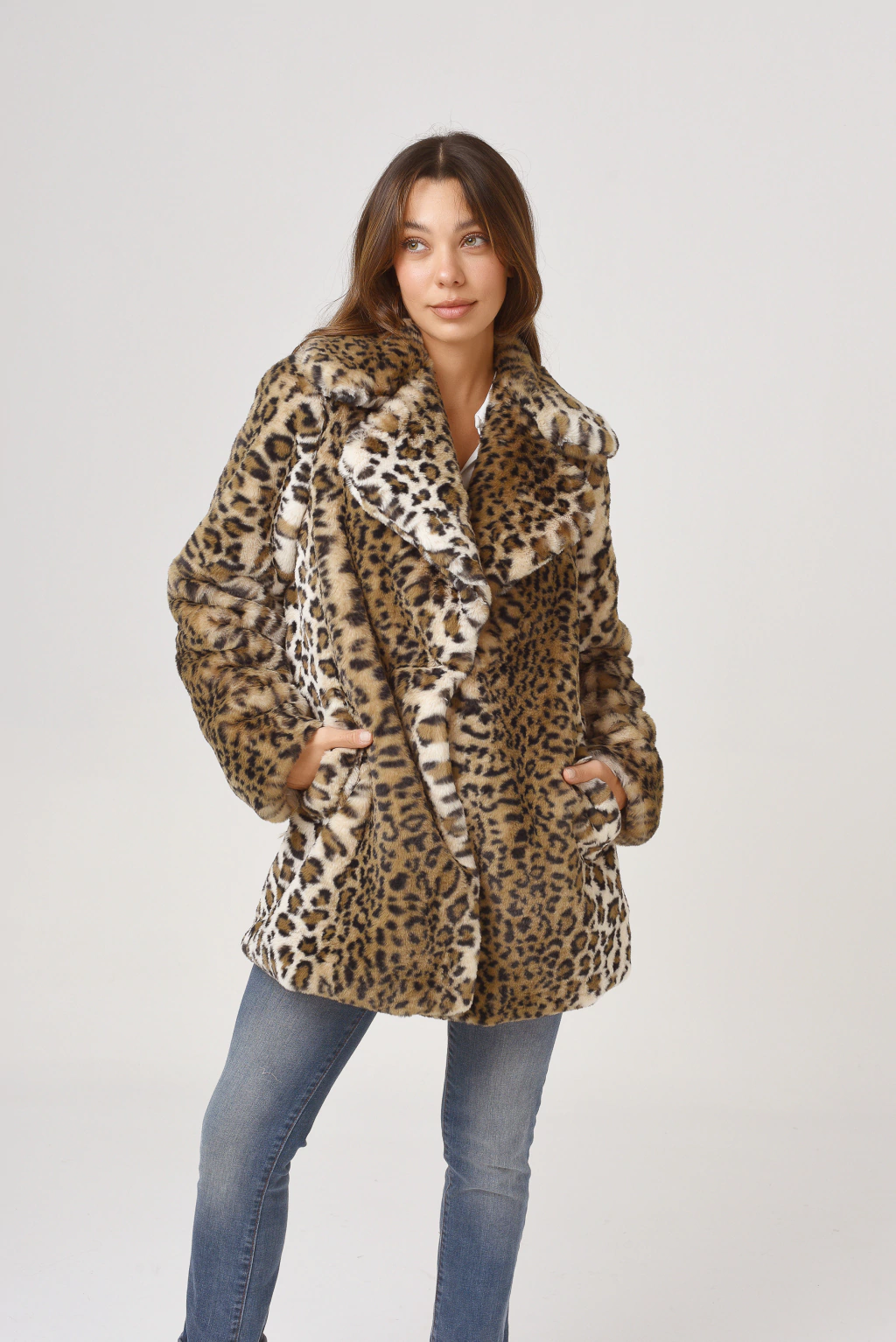 Tapado corte tamayo en piel sientetica animal print
